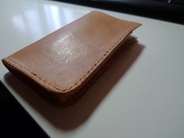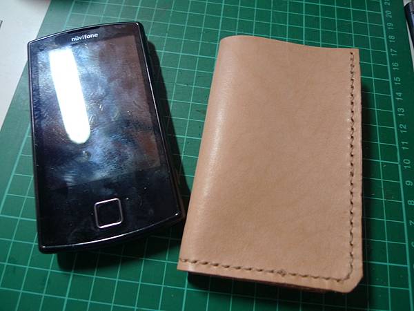 因為最近換了一新手機(其實也是舊的),所以原本的手機套變得太小,所以就打算做一個新的皮套,原本沒打算做袋身的,不過作的時候大小裁錯,不做袋身的話,就會放不進去,只好臨時改成有袋身的。